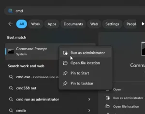 - Open Command Prompt as Administrator: Right-click the Start button and select 'Command Prompt (Admin)'.
