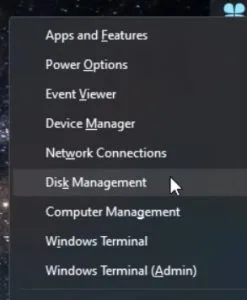 - Access Disk Management: Right-click the Start button and select 'Disk Management'.