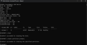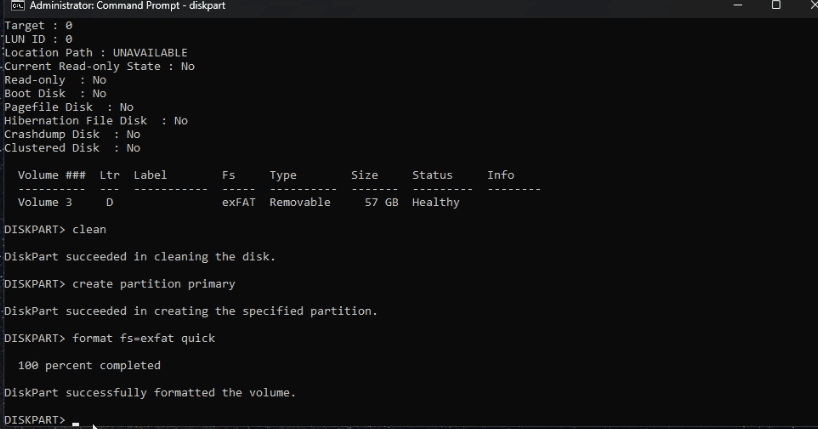 10. Enter "format fs=exfat quick" and Enter.